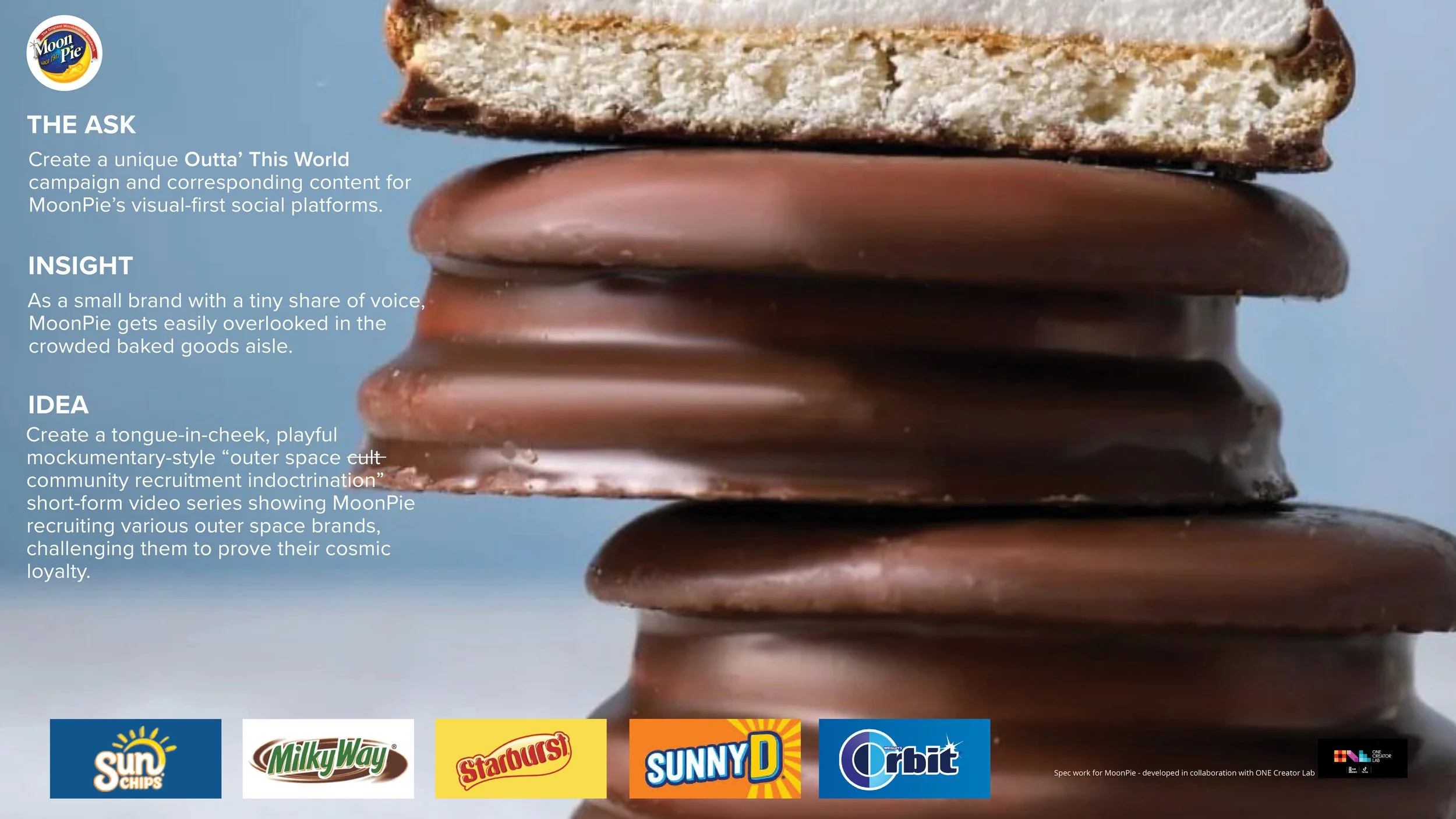 MoonPie seeks to create the ultimate galactic snack illuminati, recruiting SunChips, Milky Way, Sunkist, Sunny D, and Starburst. However, Cosmic Brownies — dark, gooey, and power-hungry — emerges as a rival cult community leader, challenging MoonPie’s dominance. The drama escalates as the recruited snacks must choose sides, leading to a hilarious and dramatic showdown in an absurd, Annoying Orange-inspired series filled with wit, irreverence, and cliffhanger endings.