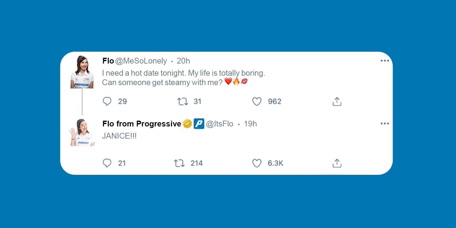 Flo acts like she doesn’t know she has a doppelganger (someone pretending to be her/identity thief ) roaming the streets of New York City impersonating her.