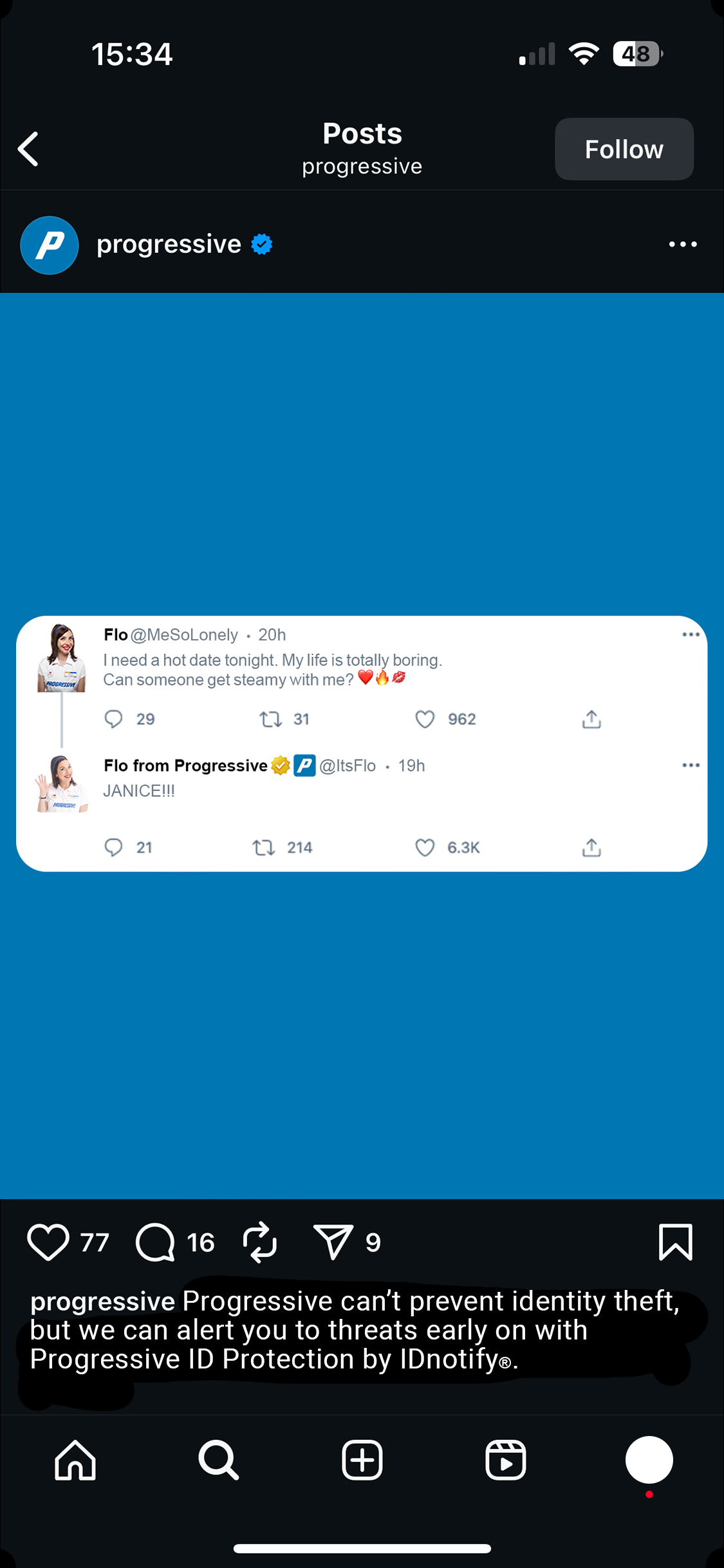 Flo then educates them on the statistics, horror, and damage of identity theft and pitches the features and benefits of having Progressive ID Protection by IDnotify®. After her pitch, she always end with “If you wait until you need it, it’s already too late”.